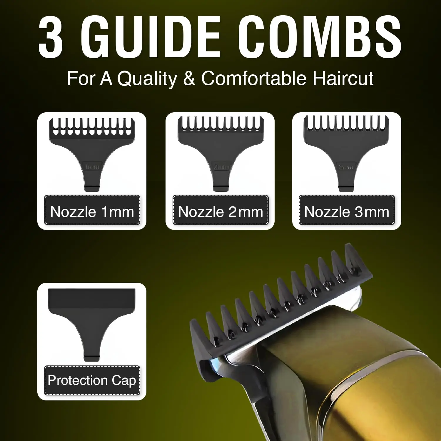 • 𝐀𝐃𝐉𝐔𝐒𝐓𝐀𝐁𝐋𝐄 𝐋𝐄𝐍𝐆𝐓𝐇𝐒 - Includes three guide combs (1mm, 2mm, 3mm), allowing for customizable cutting lengths and versatile styling, ideal for different hair types and preferences.