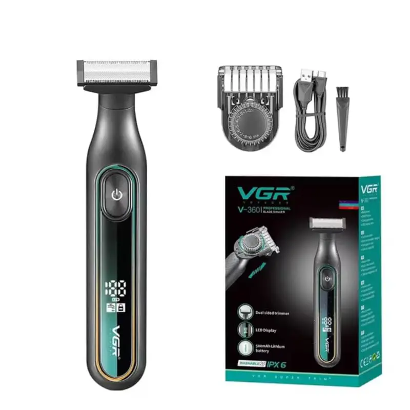 ✔One Blade Dual Sided Trimmer : A dual-Sided trimmer will actually increase the efficiency of your blades because you have the power of two saws instead of one, making the machine much easier to use. The movement of the blades also helps to reduce the chances of jams and snags occurring during cutting.✔ 10 Lock-In Cutting Length Settings: With 1 cutting guide combs and 10 precise built-in length control (0.5-9mm setting). you can cut your hair or beard exactly according to your style or requirement.✔Fully Washable IPX6 Waterproof : This electric shaver with IPX5 Waterproof allows you a comfortable dry shave or a refreshing wet shave with shaving cream or gel in the shower. You can rinse this electric shaver directly under the tap, easy to clean and maintain. The ergonomically designed OneBlade shaver gives you total control, the handle is comfortable to hold.✔Led Digital Display: An LED battery charge display that tells you exactly how much charge is left and also comes with over-charge protection. The LED Display show the power left status. ✔ Perfect Gift: Our hair Trimmers has a stylish shape, small and portable, easy to hold, which will be your ideal choice in the hair Trimmer. At the same time, it is also the best gift for your husband and boyfriend.✔SERVICE & WARRANTY: The Brand Used by Professionals – VGR Clippers & Trimmers are being used by professionals around the world in the salon and barbering industry. The quality construction of our clippers and trimmers delivers a smooth clip trim, or shave every time. SERVICE & WARRANTY: 100% No Risk: 06 months quality warranty. If you are not satisfied with this product, please contact us without hesitation our customer service will contact you within 24 hours and give you a satisfactory result