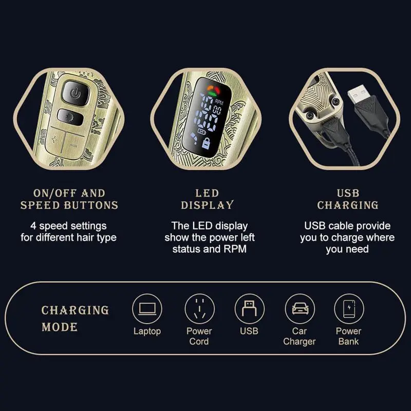 • ✔New Technology Blades – Trimmer & Clipper comes with self-sharpening Ceramic and Powder Metallurgic Blades in proper alignment for a smooth cutting/trimming, trims dry & wet, long & thick hairs, neither snagging nor pulling. ✔Led Digital Display: An LED battery charge display that tells you exactly how much charge is left and also comes with over-charge protection. It shows power left status and RPM.
